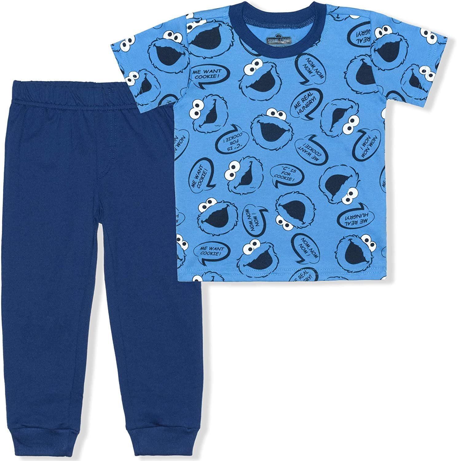 Sesame Street Cookie Monster 2 Piece Set Jogger Outfit For Boys Shirt And Pants Size 3t Blue Walmart Com